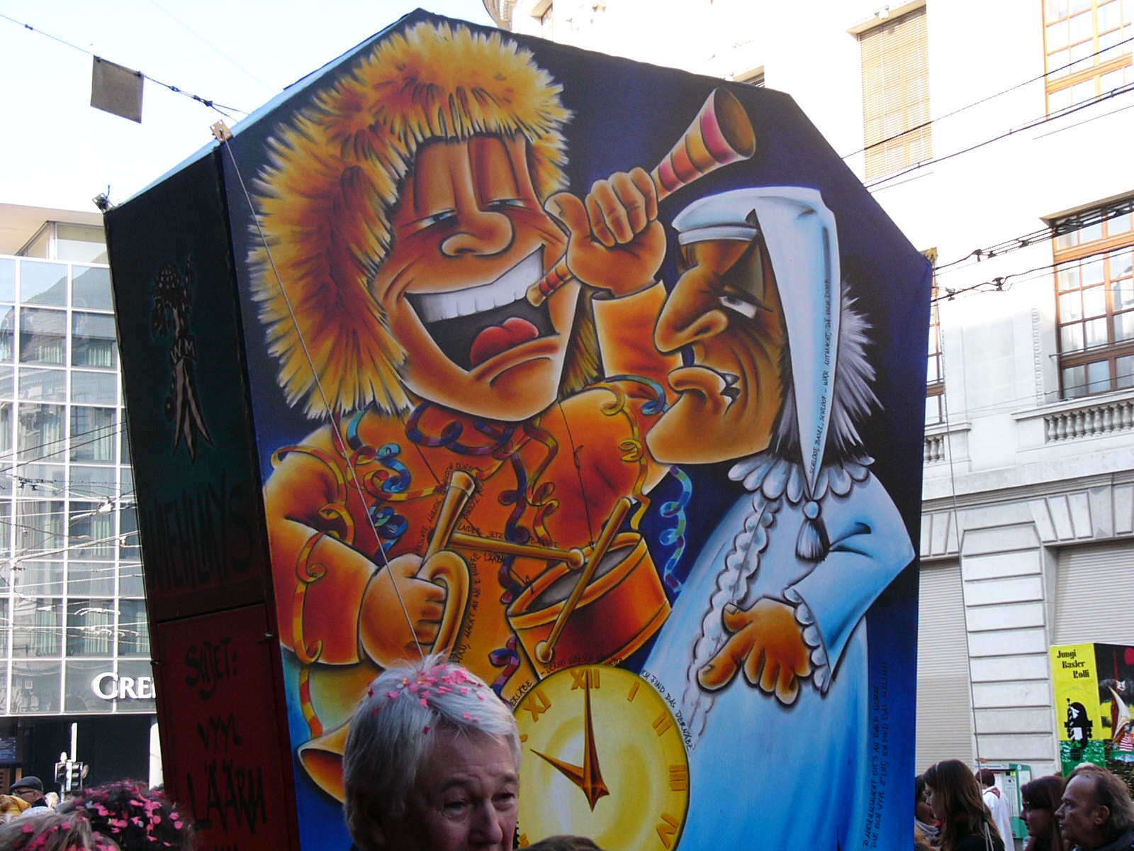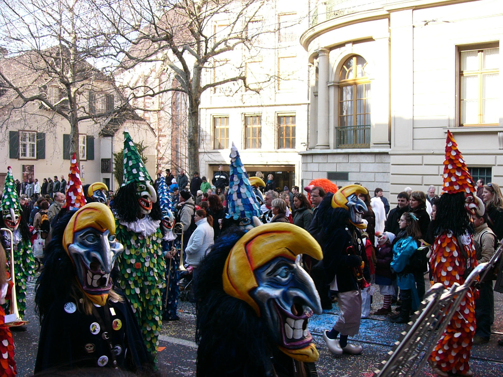 スイス国内でも一番大きなファスナハト(カーニバル)がバーゼルファスナハト。キリスト教の復活祭の40日前、いわゆる断食の前の無礼講のお祭りである。14世紀頃までさかのぼる伝統あるこのバーゼルファスナハトは2月11日の朝4時、モルゲンシュトライヒとともに幕開けした。祭りもいよいよ最終日の3日目。天気にも恵まれ街はファスナハト一色。1年で最も活気のあるバーゼルだ。