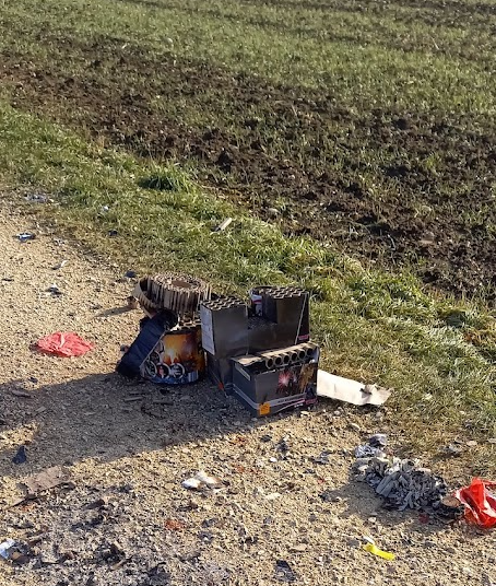 花火の直後は、まだ熱くて回収できないのはわかりますが、新年早々見たくない光景です。