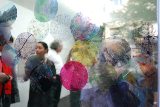 オープニングのタイトルを「東京ナイト」としたので、友人作家の烏山君に撮影してきてもらった日本の風景を外側に貼り、僕がこちらで撮影したスイス(主にバーゼル)の風景を内側に貼ることで、内側と外側/表と裏がミックスされることで、それぞれの風景の違いを鑑賞者が楽しめるのではないかな。と思いこのパフォーマンスを実行しました。