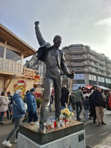 レマン湖に向かって腕を突き上げる彼の銅像は有名で、ファンの聖地として人気があります。