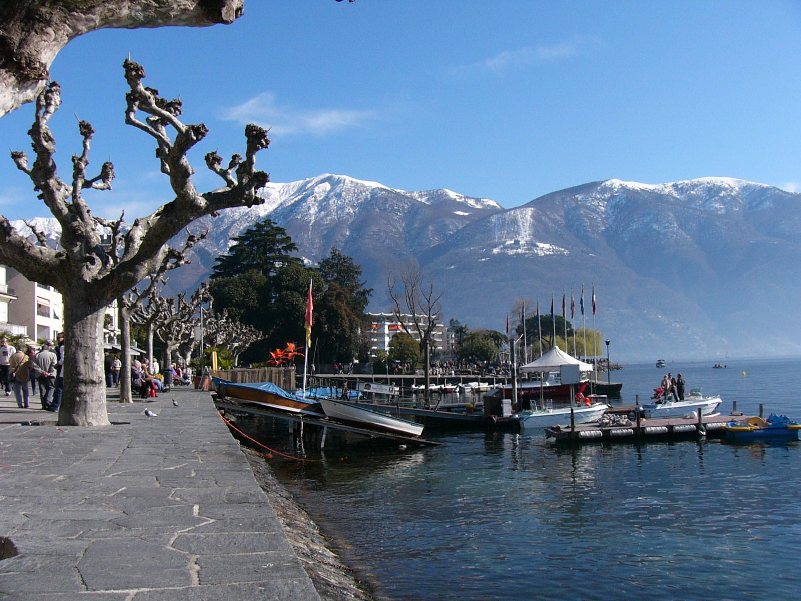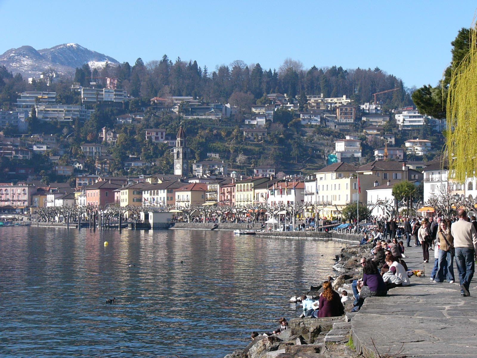 州都はベリンツォーナで、ルガーノ、ロカルノ、アスコーナの街には、世界遺産に登録されたお城や石を積み上げた家々、チェントヴァッリ鉄道から見る渓谷など湖以外の見所もある。今回は有名リゾートのアスコーナの風景を紹介します。