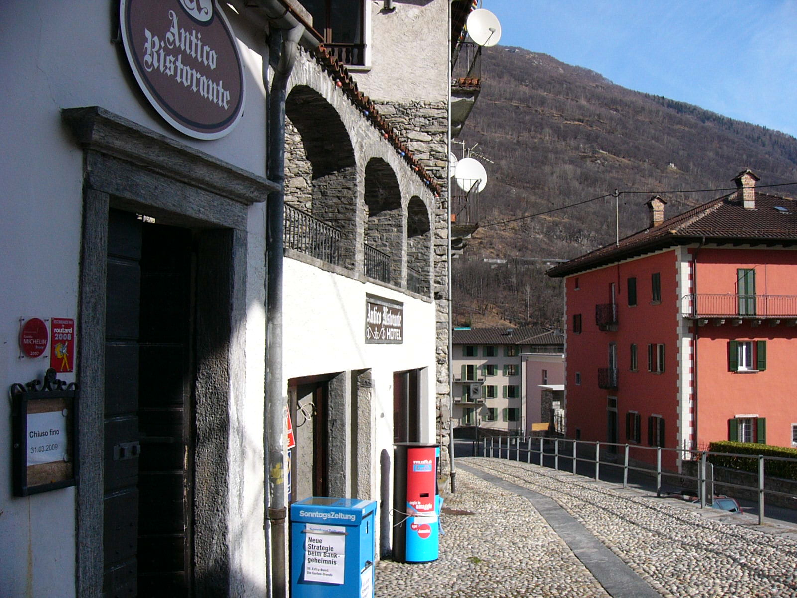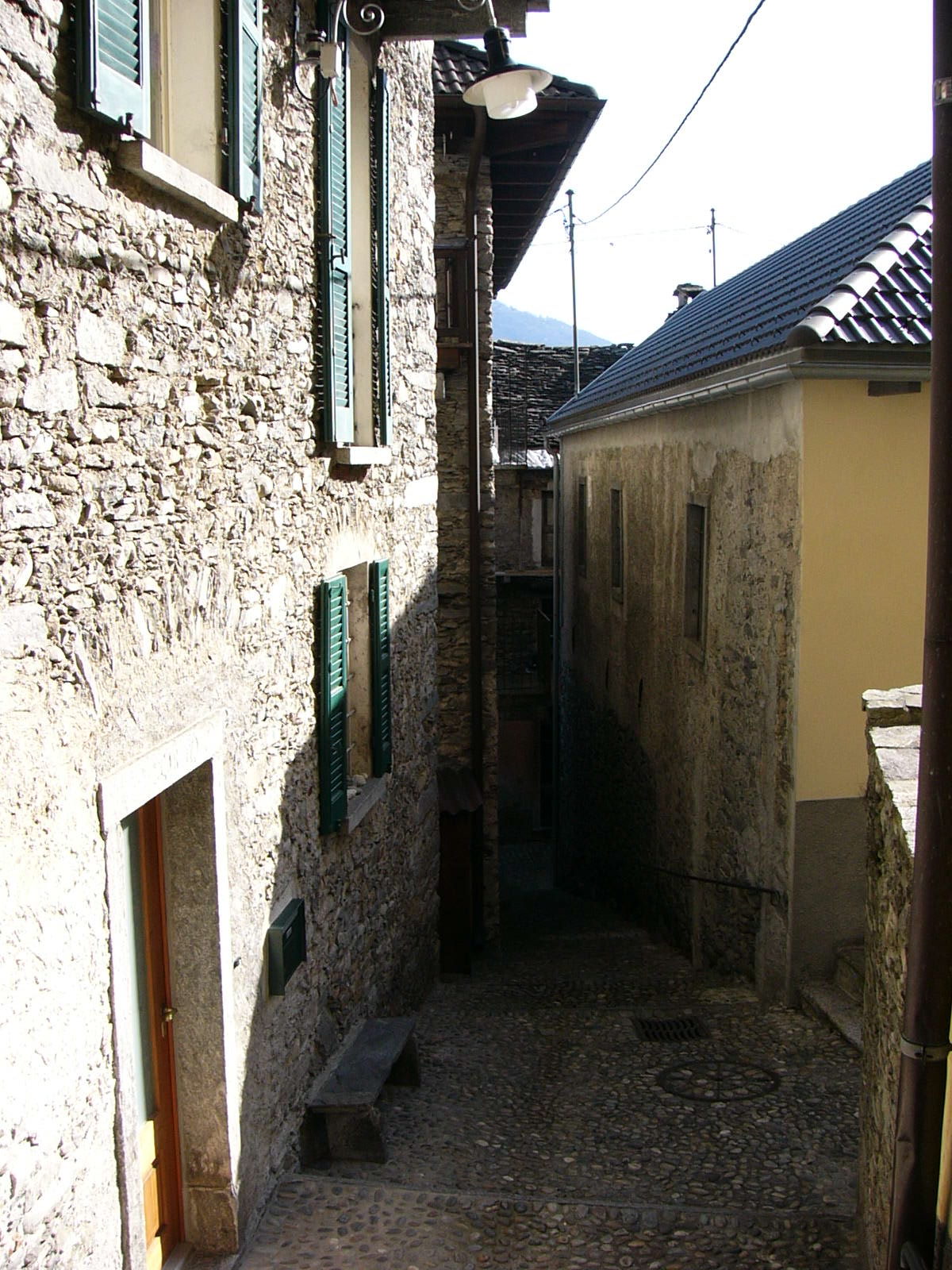 アスコーナから山間の方へ移動すると、石畳の道に少し日本を思わせるような、平らな石の屋根の家々が並ぶIntragna Tegna / イントラニヤ テニヤの風景が見られる。古き情緒ある狭い道がなんともいえない雰囲気を醸し出していて、タイムスリップしたかのよう。
